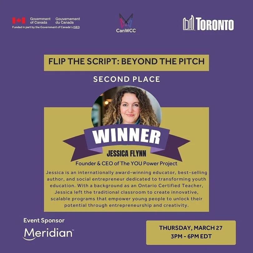 As the CEO and Founder of The YOU Power Project, Jessica is incredibly honored to have secured second place nationwide in CanWCC's "Flip the Script" pitch competition. This recognition is a testament to the innovative and transformative work she and her team are doing at The YOU Power Project, empowering young people to unlock their potential through entrepreneurship and creativity.